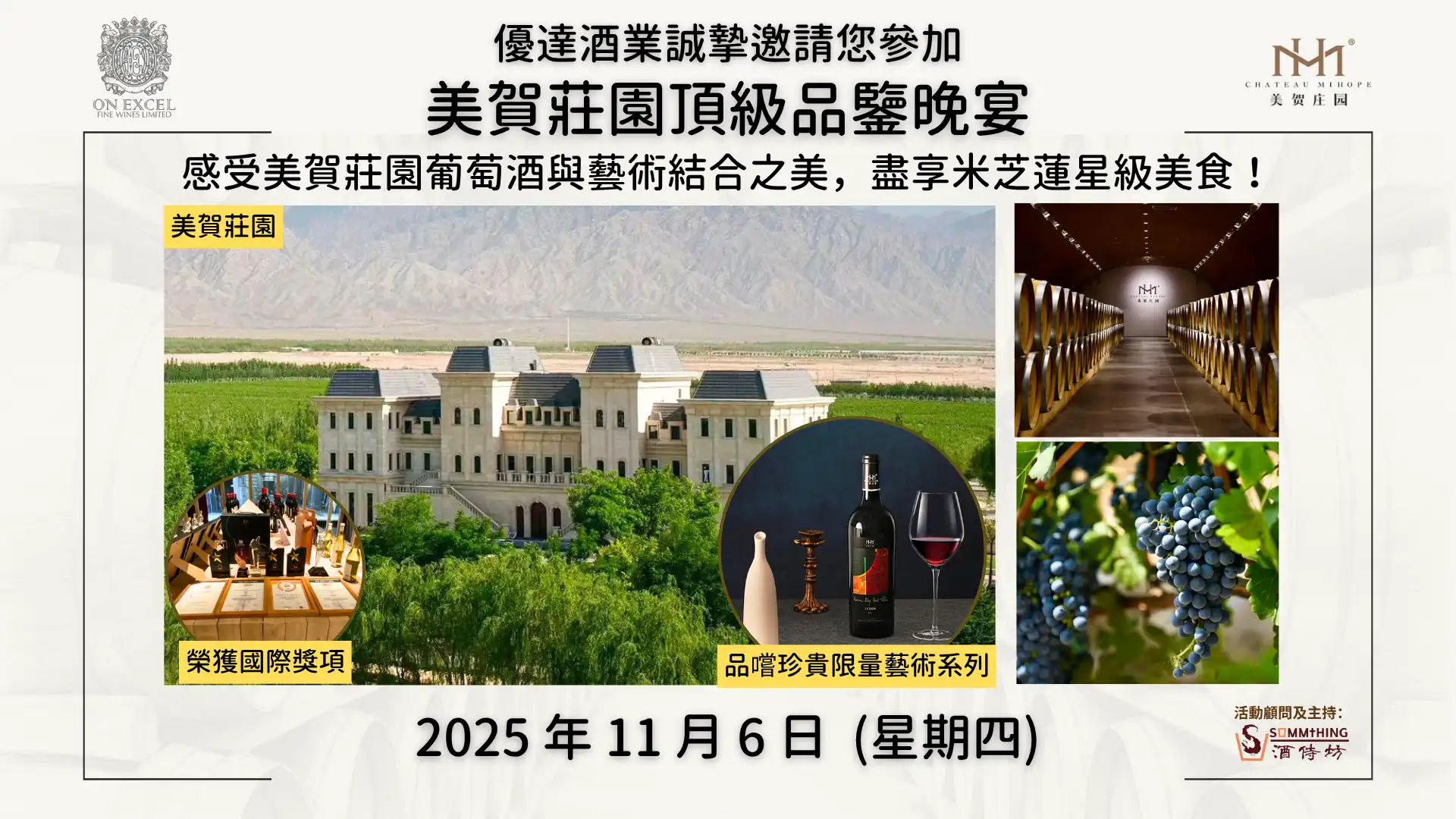無論您是葡萄酒收藏愛好者、美食鑒賞人士,或尋求高端社交體驗的賓客,本次晚宴均能為您帶來難忘的感官盛宴。期待 11 月 6 日與閣下相聚,共品佳釀、同賞美饌!