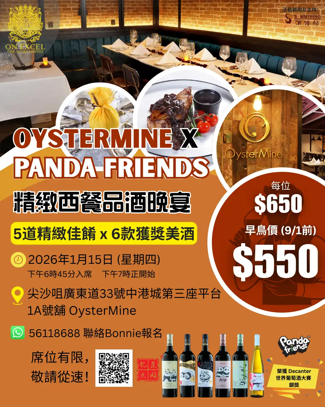 🥂 1.15 OysterMine x Panda Friends 精緻西餐品酒晚宴 🐼 新一年來臨係時候約埋班朋友一齊「嘆世界」!
